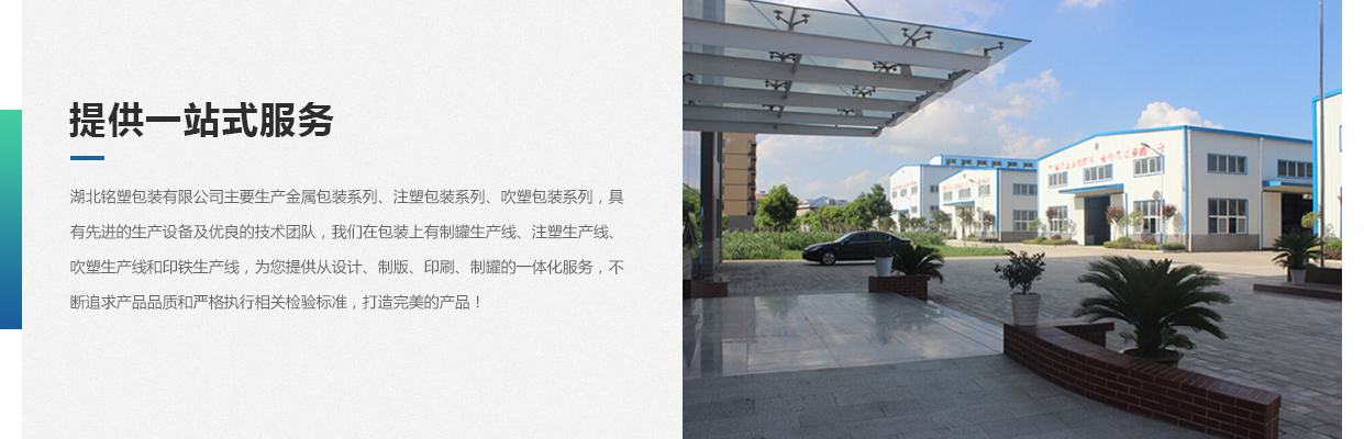 湖北銘塑包裝有限公司一家集研發(fā)、生產(chǎn)、銷售于一體的較優(yōu)秀民營企業(yè),技術(shù)力量雄厚,產(chǎn)品質(zhì)量可靠。位于交通暢順,百業(yè)興旺、經(jīng)濟(jì)富裕、政策開放的孝感開發(fā)區(qū)域。我們企業(yè)的營銷戰(zhàn)略是以建筑為土壤,以產(chǎn)品為種子,以質(zhì)量為肥料,讓綠色鋪滿全球。憑借多年來的行業(yè)經(jīng)驗,公司不斷進(jìn)行創(chuàng)新和研發(fā),為市場提供更廣泛的產(chǎn)品應(yīng)用領(lǐng)域和更好環(huán)保節(jié)能產(chǎn)品,為國家能源環(huán)保戰(zhàn)略和可持續(xù)發(fā)展戰(zhàn)略作出應(yīng)有的貢獻(xiàn)。 湖北銘塑包裝有限公司主要生產(chǎn)金屬包裝系列、注塑包裝系列、吹塑包裝系列,具有先進(jìn)的生產(chǎn)設(shè)備及優(yōu)良的技術(shù)團(tuán)隊,我們在包裝上有制罐生產(chǎn)線、注塑生產(chǎn)線、吹塑生產(chǎn)線和印鐵生產(chǎn)線,為您提供從設(shè)計、制版、印刷、制罐的一體化服務(wù),不斷追求產(chǎn)品品質(zhì)和嚴(yán)格執(zhí)行相關(guān)檢驗標(biāo)準(zhǔn),打造更好的產(chǎn)品!