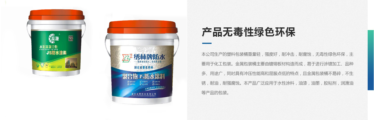 本公司生產(chǎn)的塑料包裝桶重量輕,強度好,耐沖擊,耐腐蝕,無毒性綠色環(huán)保,主要用于化工包裝。金屬包裝桶主要由鍍錫板材構(gòu)造而成,易于進(jìn)行涂鍍加工、品種多、用途廣,同時具有沖壓性能高和屈服點低的特點,且金屬包裝桶不易碎,不生銹,耐油,耐強腐蝕。本產(chǎn)品廣泛應(yīng)用于水性涂料,油漆,油墨,膠粘劑,潤滑油等產(chǎn)品的包裝。